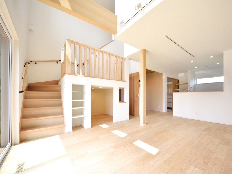 リビングは子供が喜ぶスキップフロアを設置し、子供も大人もわくわくするようなお家づくりをご提案させていただきました。