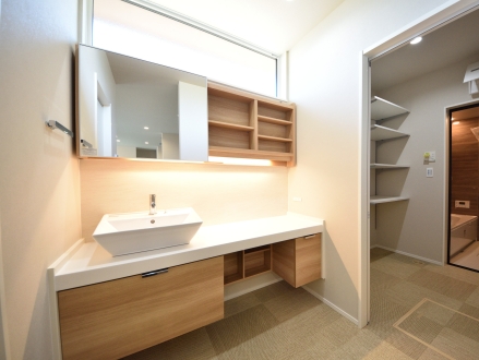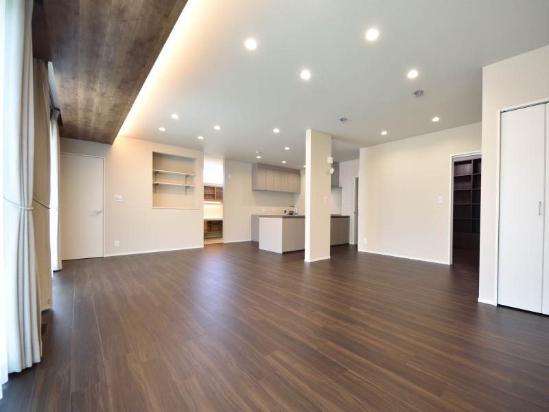 住み心地、家族のつながりを意識した平屋。LDKを中心に位置した間取りで、平屋ならではの動線に必ずLDKが含まれる為、家族がいつまでも顔を合わせられるお家になりました。