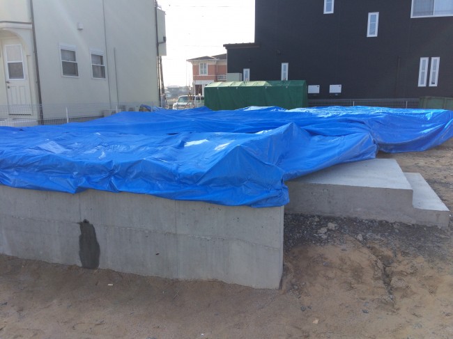 ブルーシートで養生して、ひそやかに 上棟の日を待ちます・・。