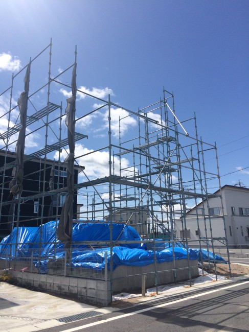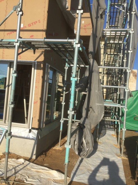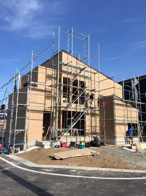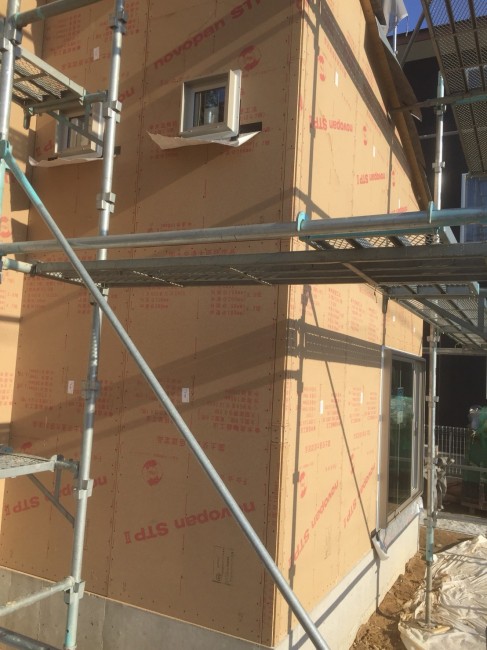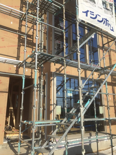 「本日バルコニー、玄関以外のサッシの取り付けが終わりました。」