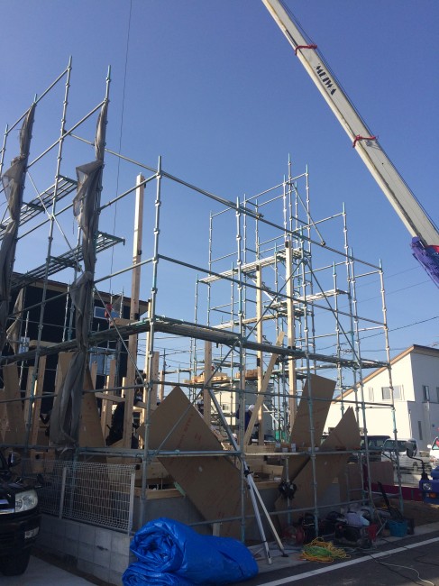 上棟の次の日は まず サッシが搬入と取り付けがされます(^^♪