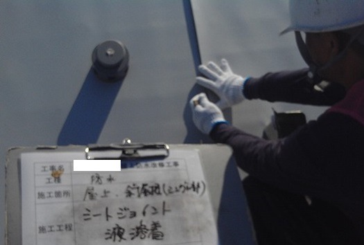 ハイブリッド工法(塩ビシート防水機械式固定(シーカプラン 強度と耐久性に優れる高品質シート、シートをIWディスクとアンカーで固定する機械式工法)+ウレタン塗装防水併用工法)による屋上防水、脱気筒・改修ドレン設置、外壁ひび割れ補修を行う。