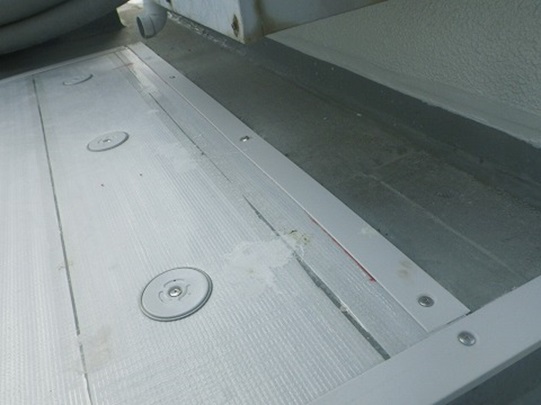今回はマンション屋上(平屋、一部斜屋根)の防水工事でした。雨漏れが発生し屋上を確認すると屋上シート防水の膨れが多々ありました。コンクリートと防水層、防水層と下地材の間に空気が溜まっている状態です。防水層と防水層の間に水が入り込んでいることも確認できました。検討の後全体的な防水性能の劣化による雨水の浸入と判断し全面防水をやりかえる工事となりました。