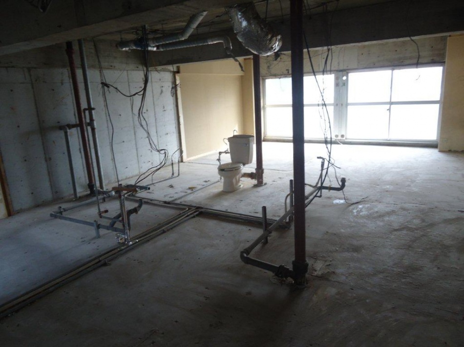 現在は防水層とその下地の撤去を行い雨水浸入経路を確認し、修繕方法の確認をしている段階です。