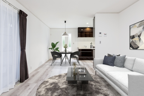 • 【埼玉県三郷市】光溢れるLDKとダークな色合いが調和。こだわりを叶えたモダン住宅