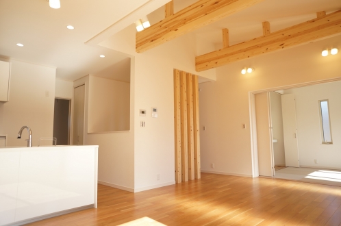 三郷市S様邸は木工事一階の天井下地組を行なっています。