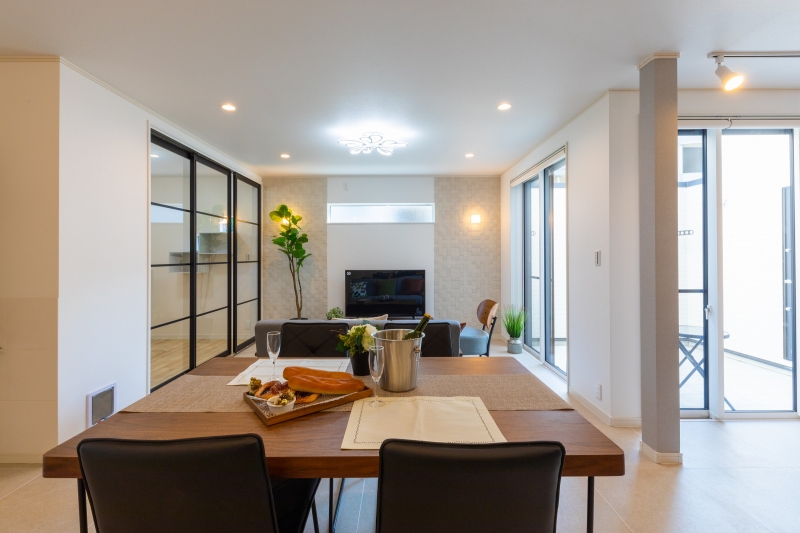■テレワークスペースとLDKはガラス扉で仕切りができ仕事をしながらご家族の様子がうかがえます。