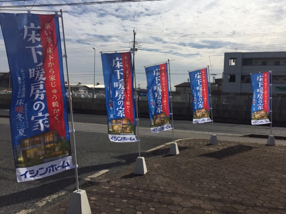 陽南ショールームの入口に掲げてあるノボリの一部が新しくなりました。