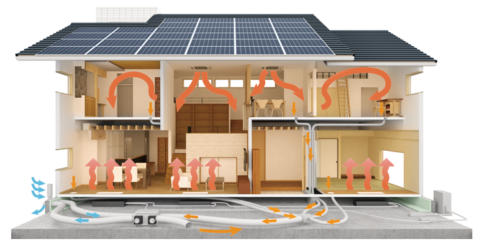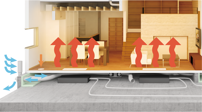 床下から輻射熱で温めるので、頭寒足熱。理想的な健康空間です。