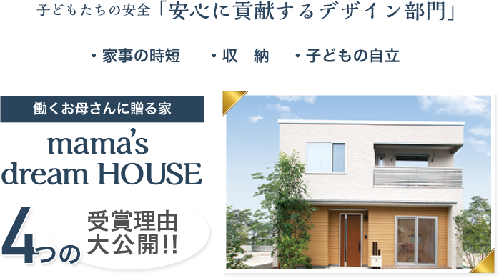 20代・30代の共働き子育て世代を対象に、働くお母さん・子育てママが求める 家の要望をぎゅっとまとめて、ママに優しい家をカタチにしました。