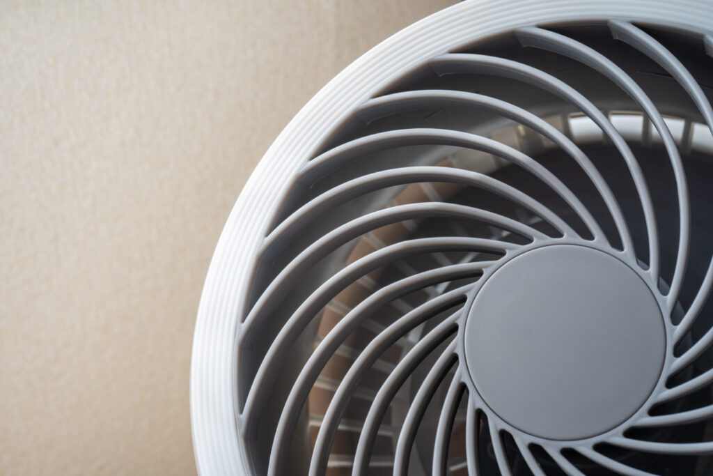 使用する際は、エアコンの対角線上にサーキュレーターを置き、エアコンの冷気を壁や天井に向けて送ることで、冷たい空気が部屋全体を巡りやすくなります。