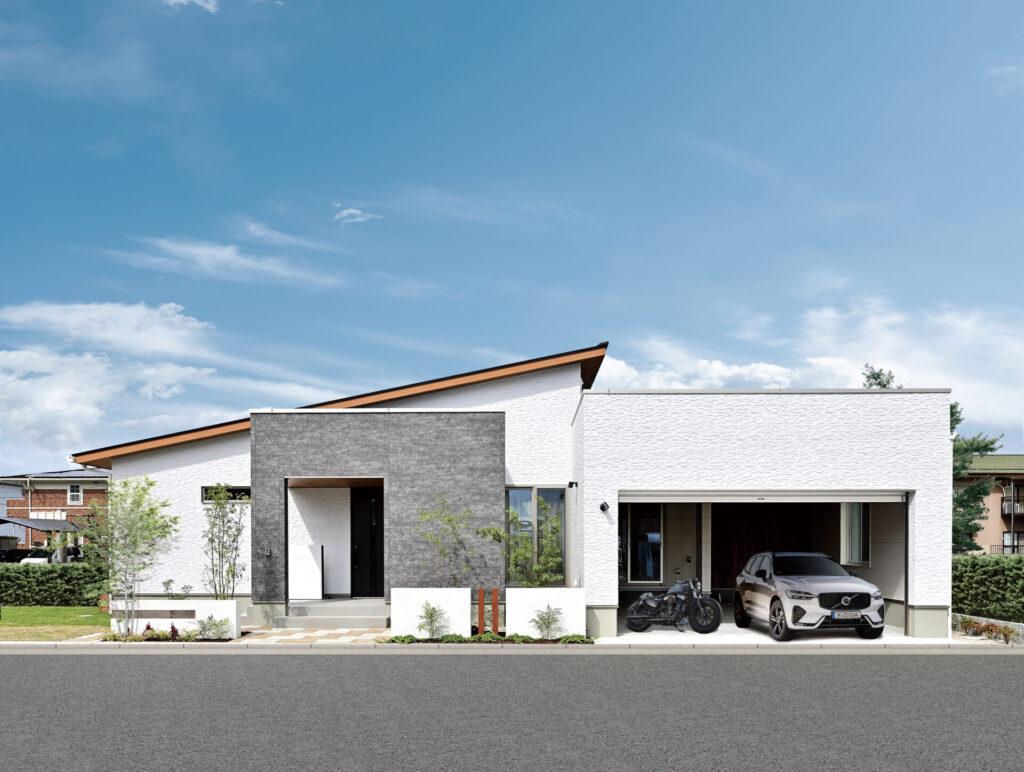 イシンホームが実際に手掛けた、おしゃれで機能的な平屋ガレージハウスを紹介します。