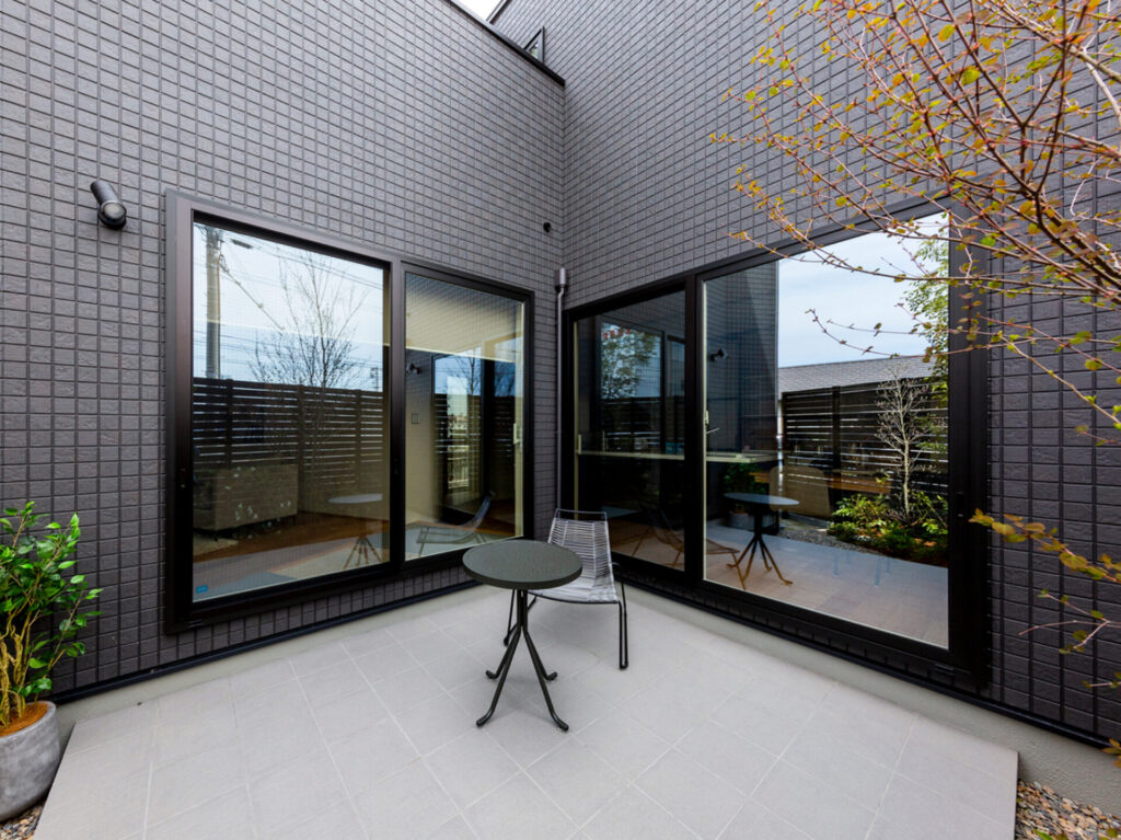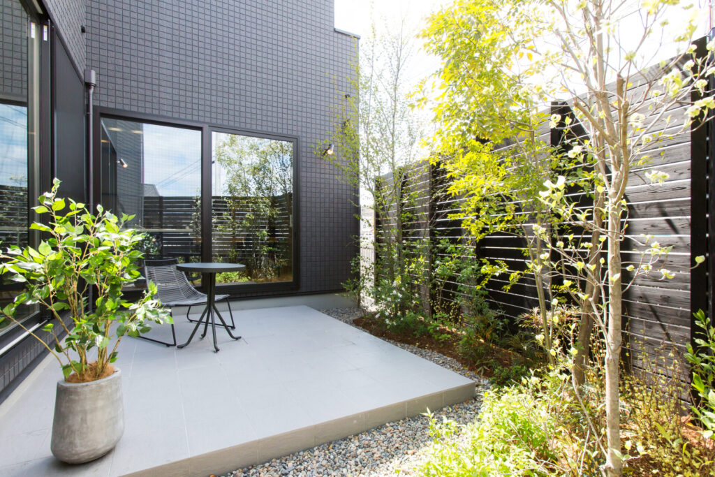 中庭とは壁や建物で囲まれた屋外空間のこと。道路や周囲の家から視線が届きにくいため、プライバシーを守りながら、くつろぐことができます。