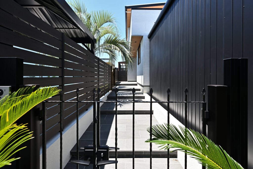 中庭を囲いすぎると暗く・圧迫感が出やすくなります。反対に開けすぎると隣家からの視線が入ってきます。壁の高さを1.6〜1.8m程度にし、上部は開けるなど“視線のコントロール”がポイント。ルーバー・格子・半透明パネルなどで「光を通して視線を遮る」工夫が効果的です。