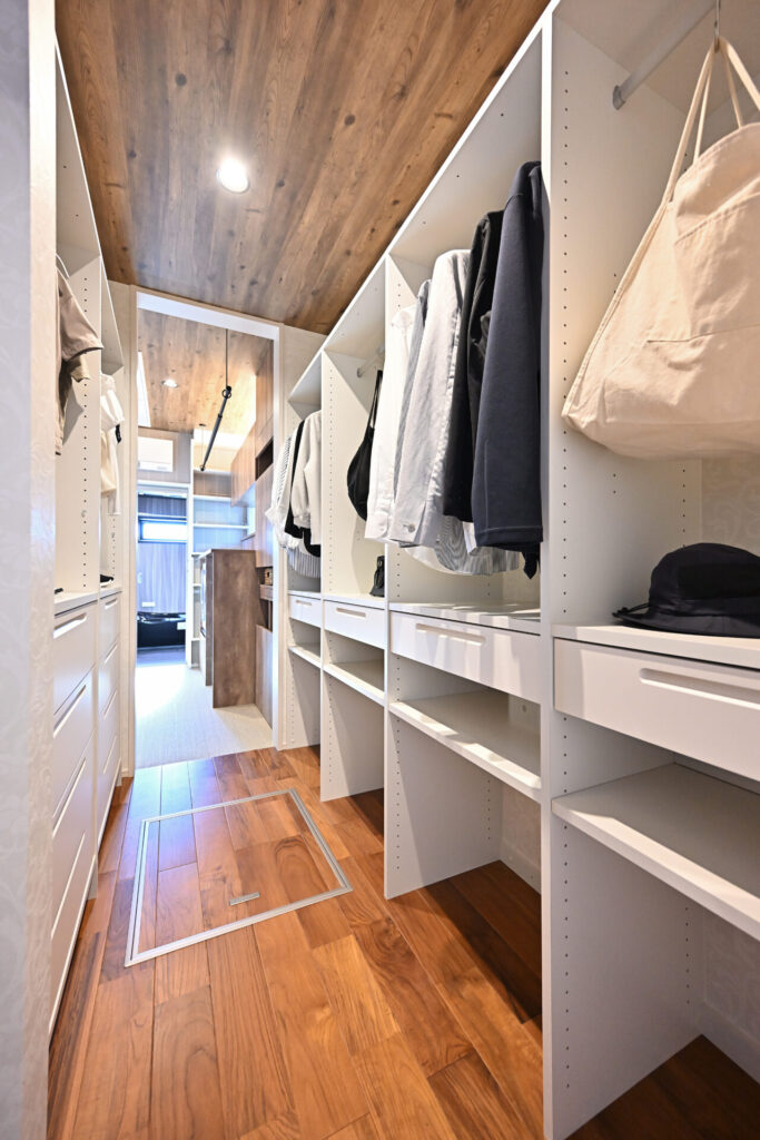 ファミリークローゼットも、「3坪の部屋をつくる」と考えると面積を圧迫します。しかし、本質は“仕組み”です。家族の衣類を一元管理し、動線の中で出し入れできることがポイントです。