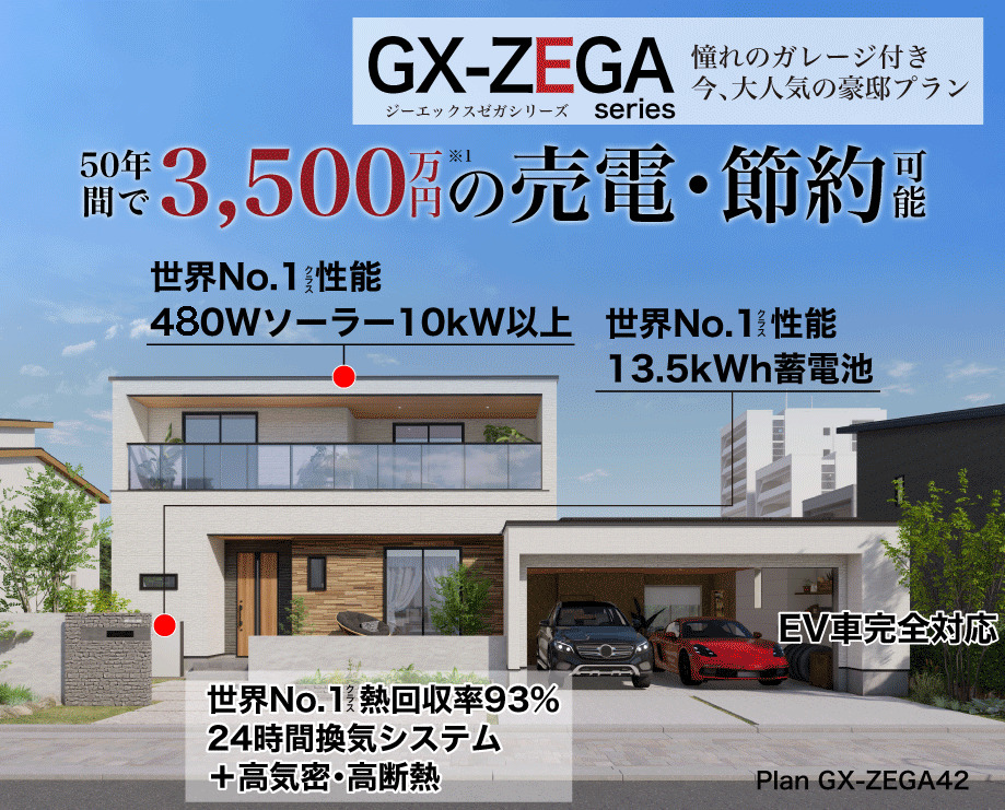 - 大人気のガレージ付き新築プラン GX-ZEGA