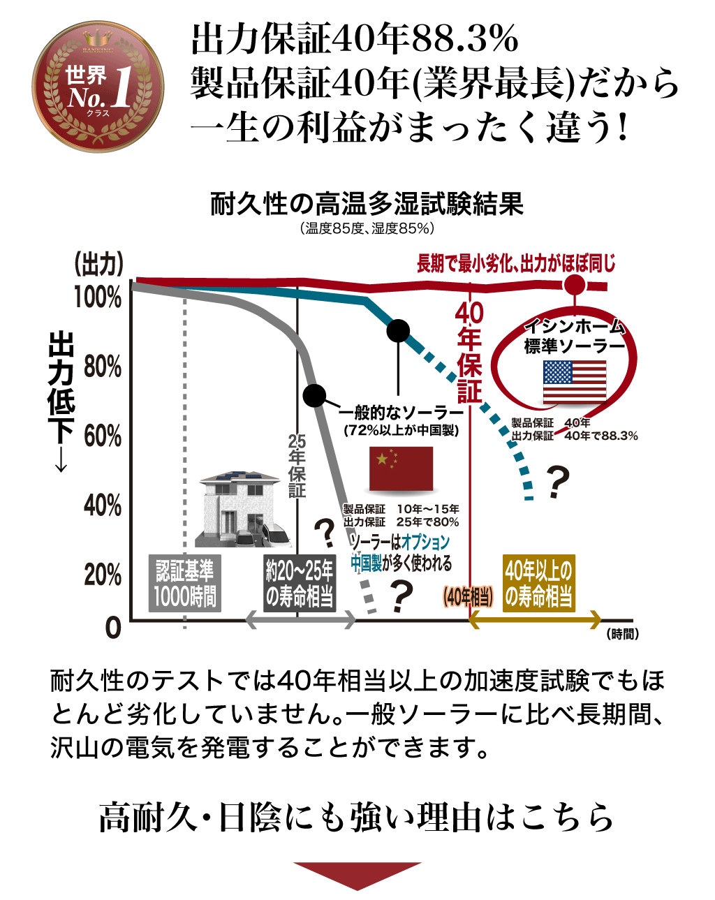 ソーラーの劣化が少なく長期売電ができる!!