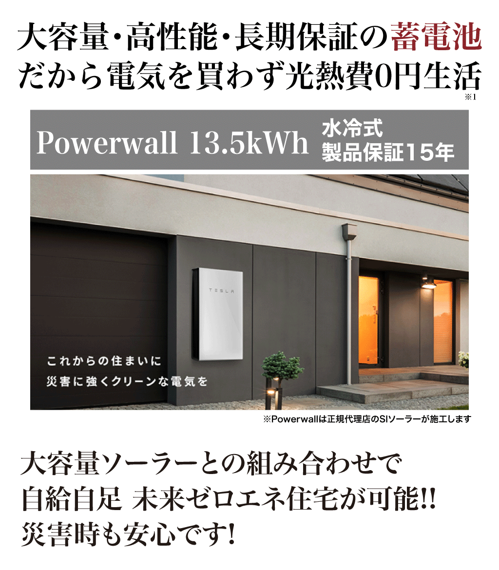 13.5kWhの大容量だか大容量ソーラーとソーラー給油併用で消費電力の多い家庭なら更に大きく節約できる!