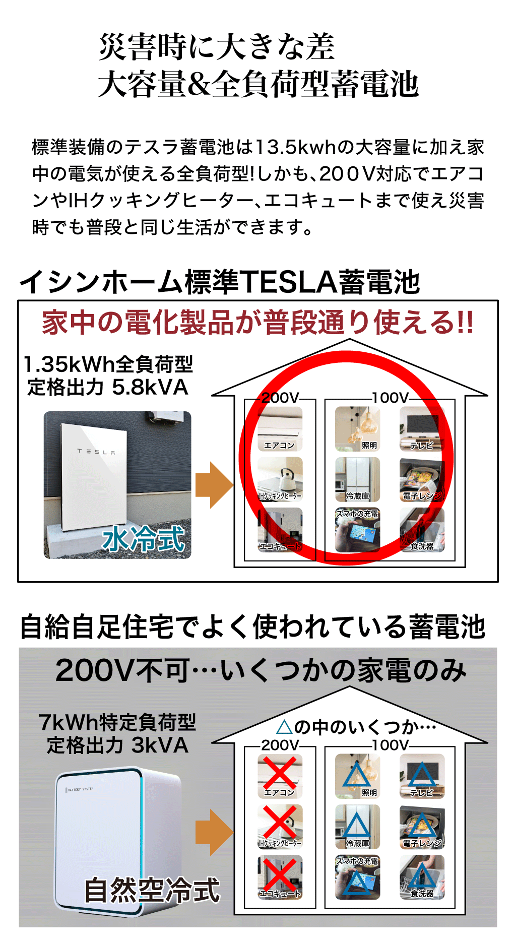 全負担の蓄電池は全ての家電が使える!!