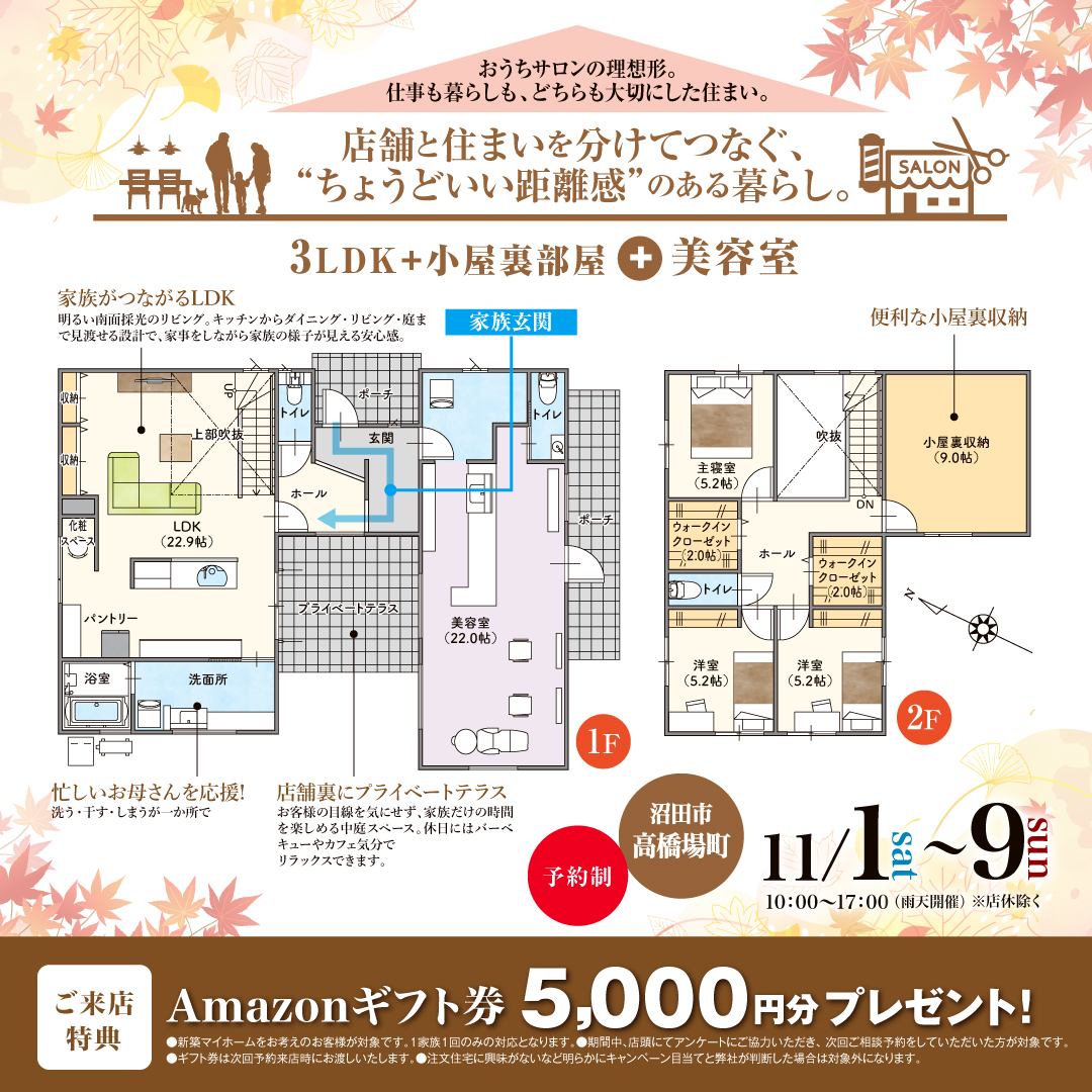 ⚡ 沼田市で完成見学会 ✂️ 自宅サロン×家事ラク×省エネ 🏠 動線分離でお客様も家族も快適