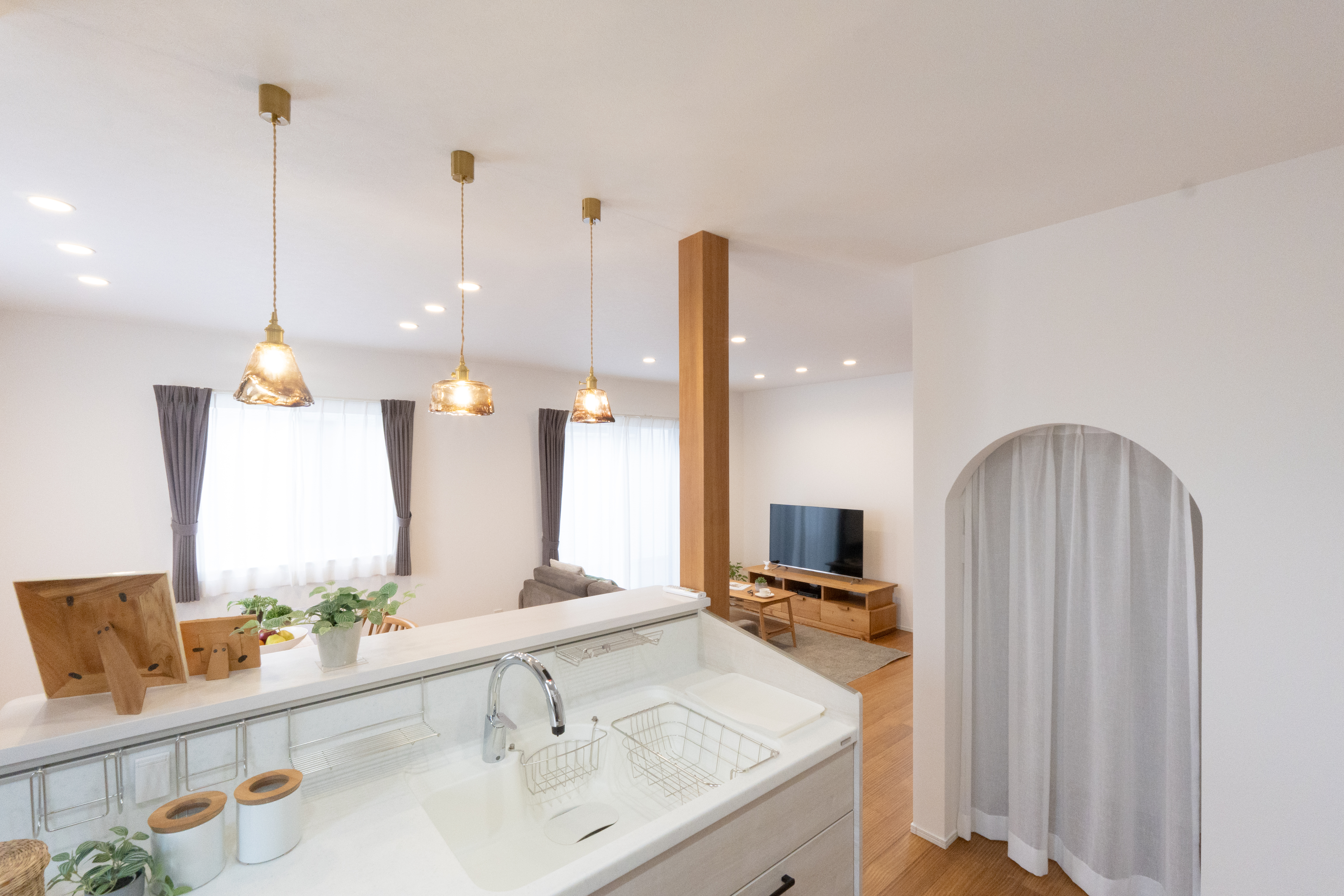 リビング・ダイニング・キッチンがほどよくつながり、どこにいても家族の気配を感じられる設計です。動線もシンプルで、回遊しやすい間取りのため、日々の生活がスムーズに。