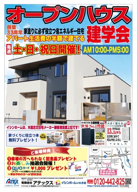 家づくりに必ず役立つ省エネルギー住宅の見学会を開催します!!