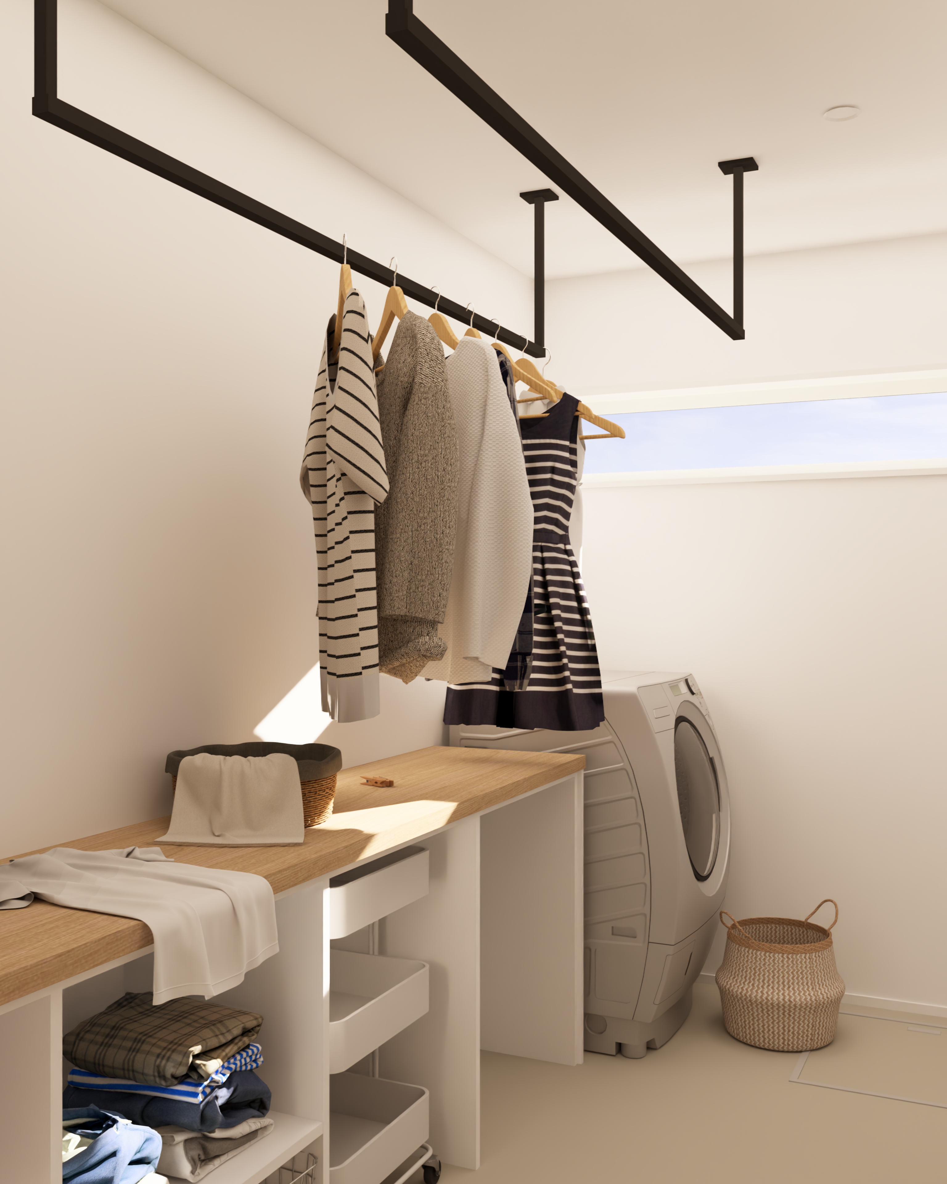 洗濯→乾燥→収納が最短距離で行え、天候に左右されない室内干しにも対応しています。