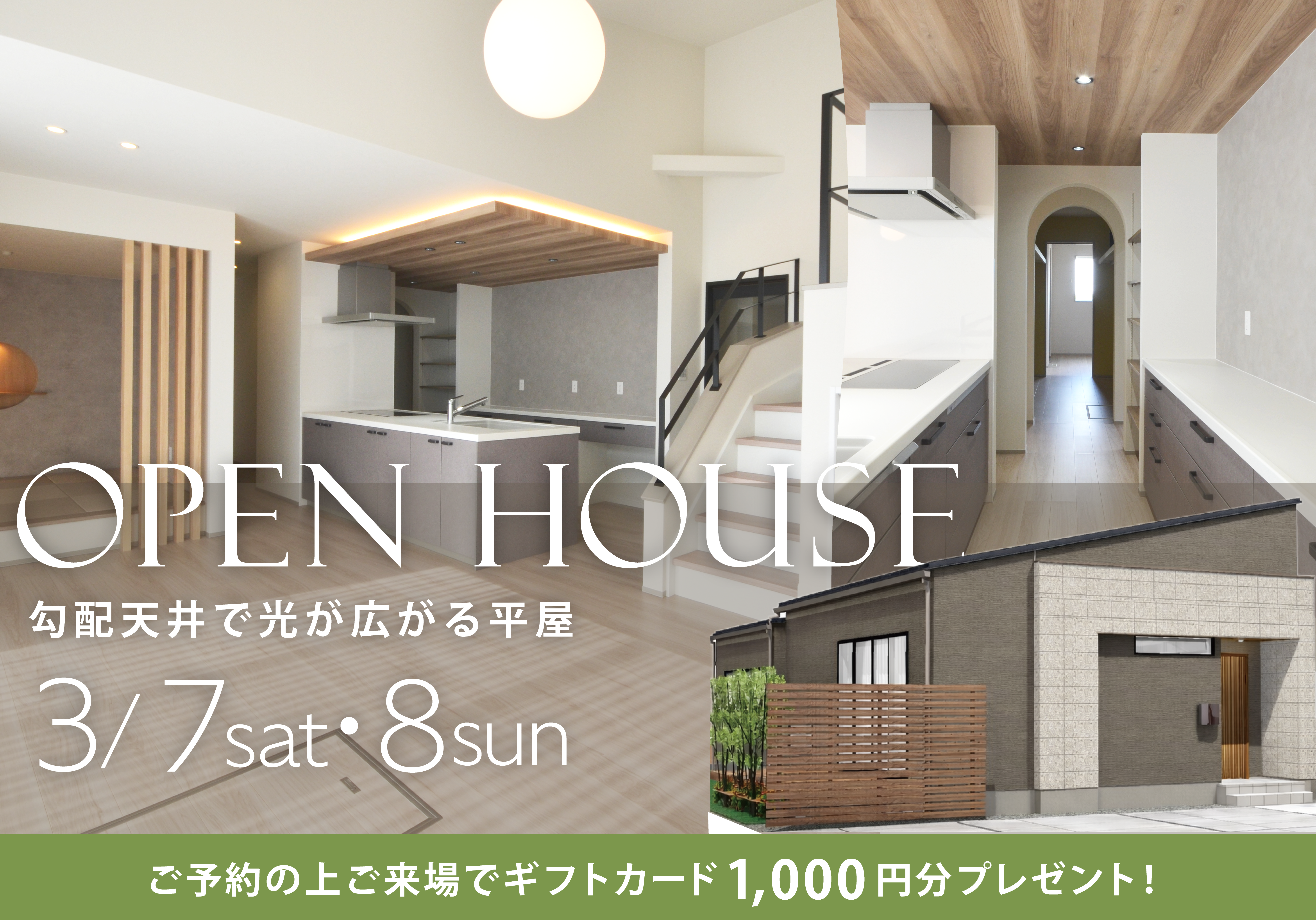 【3/7㈯.8㈰開催】勾配天井で光が広がる31坪の平屋|完成見学会in丸亀市綾歌町
