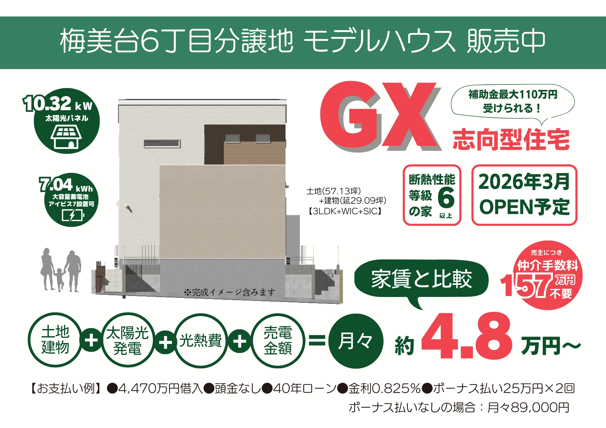 イシンホームなら太陽光発電システム、蓄電池、EVコンセント、エコアイ換気システムなど高性能な設備で電気代0円の賢い家を建てられます。