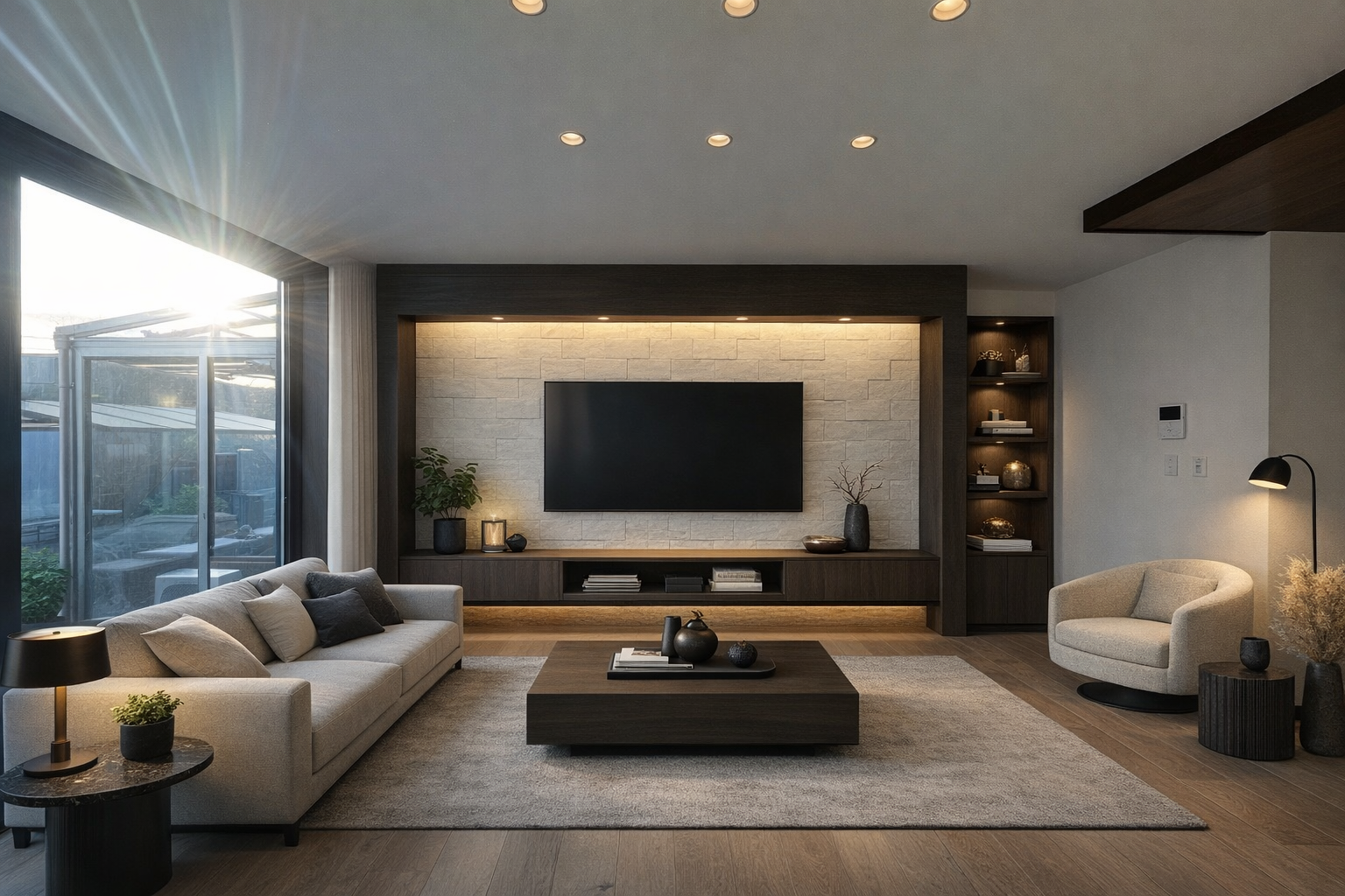 ✅ 大理石調のモダンでクールな空間✨リビングに一新(TV裏のエコカラットもお気に入り💎)