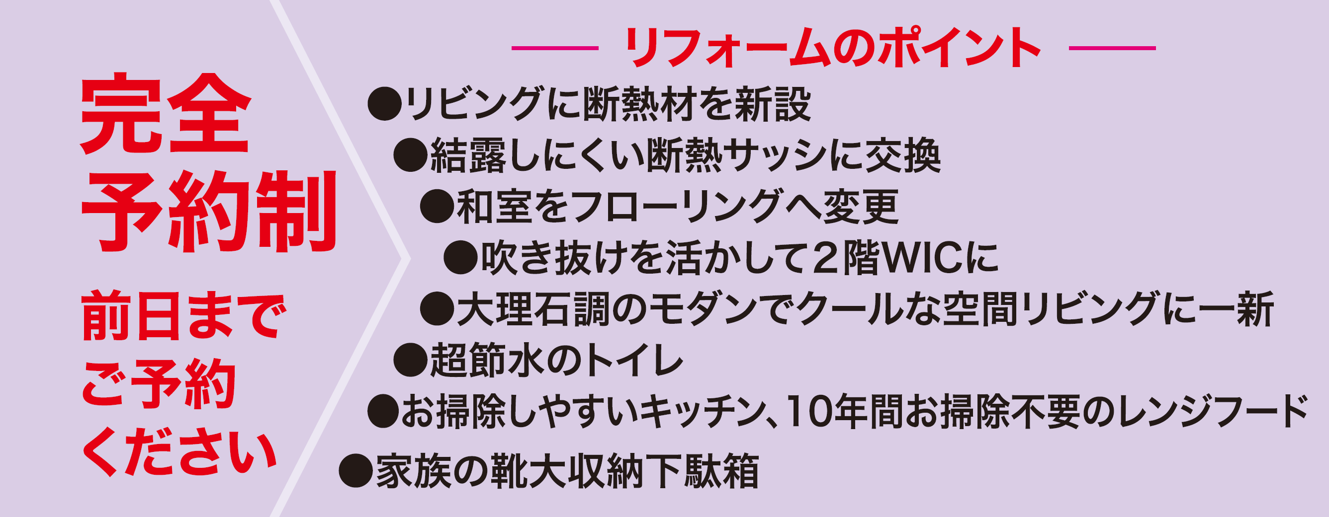 📋 完全予約制の見学会です。ぜひこの機会に、👉 リフォーム後の住まいをご覧ください。