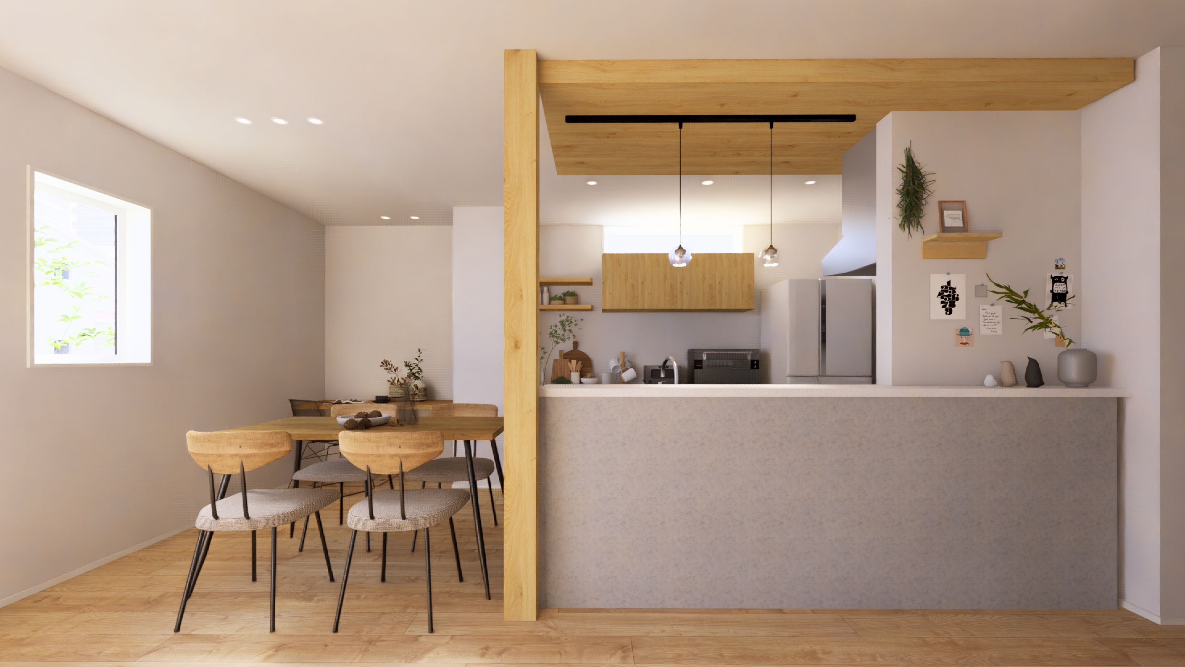 「横並びのダイニング。配膳も片付けも、流れるようにスムースここ」