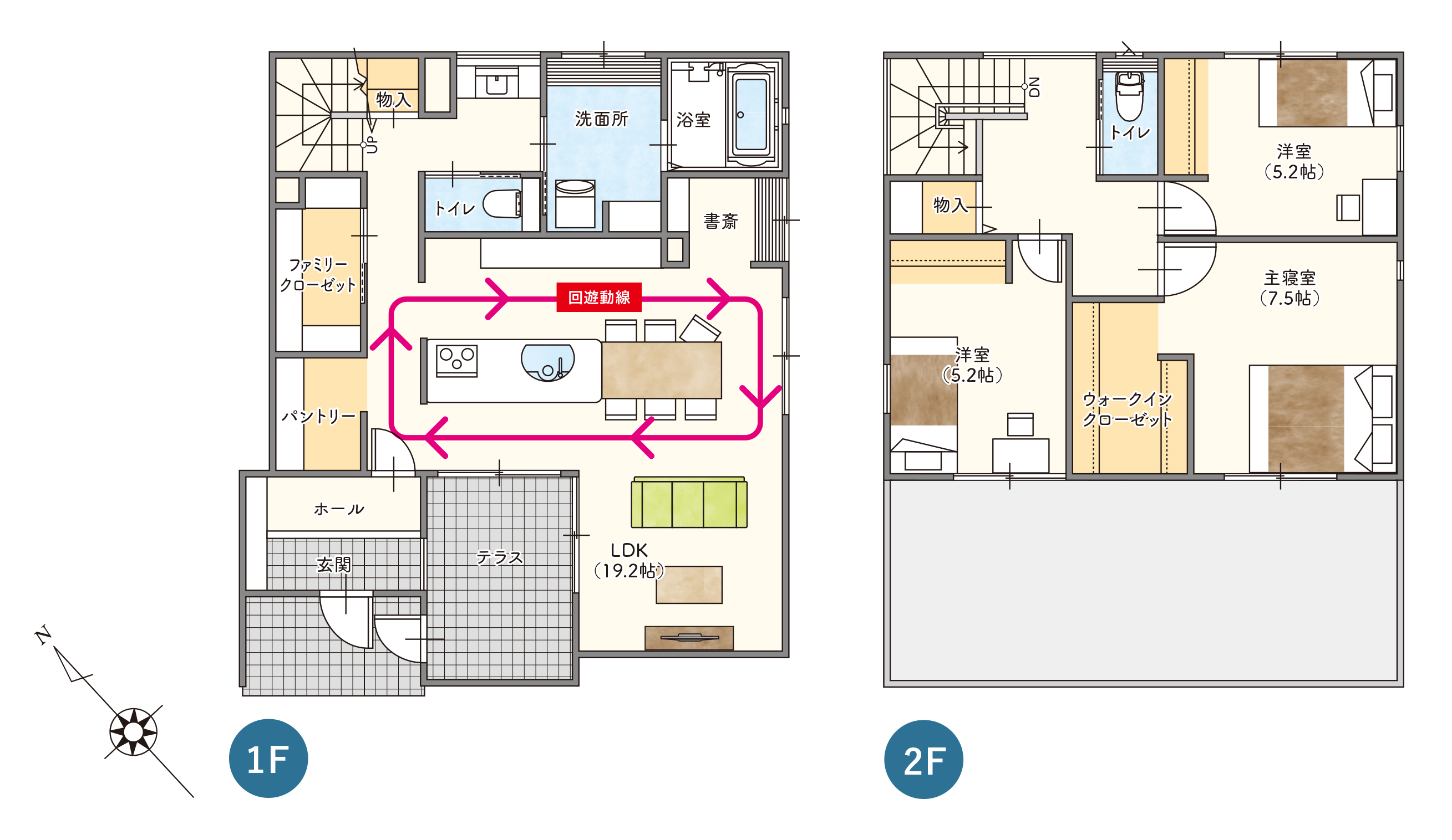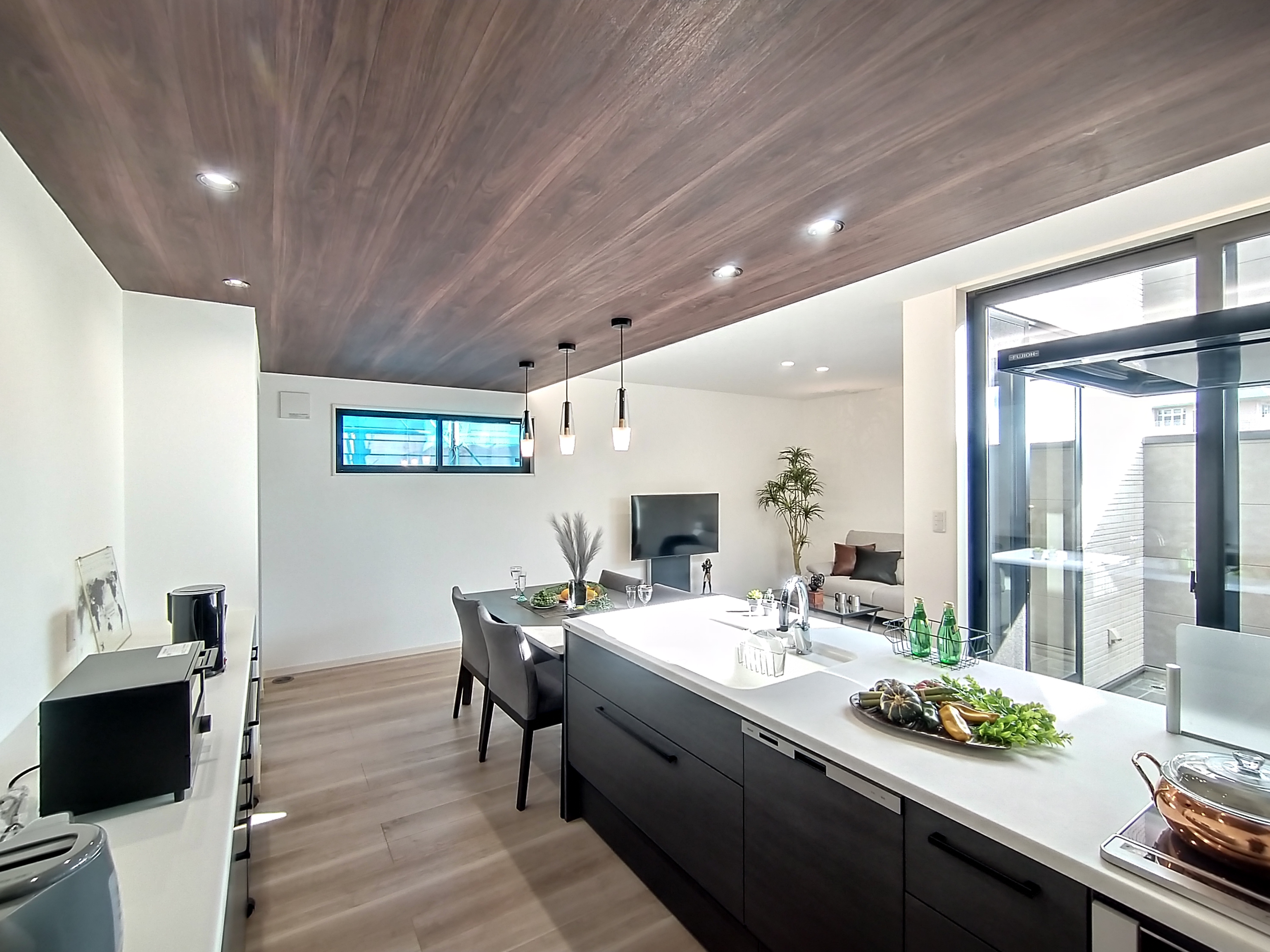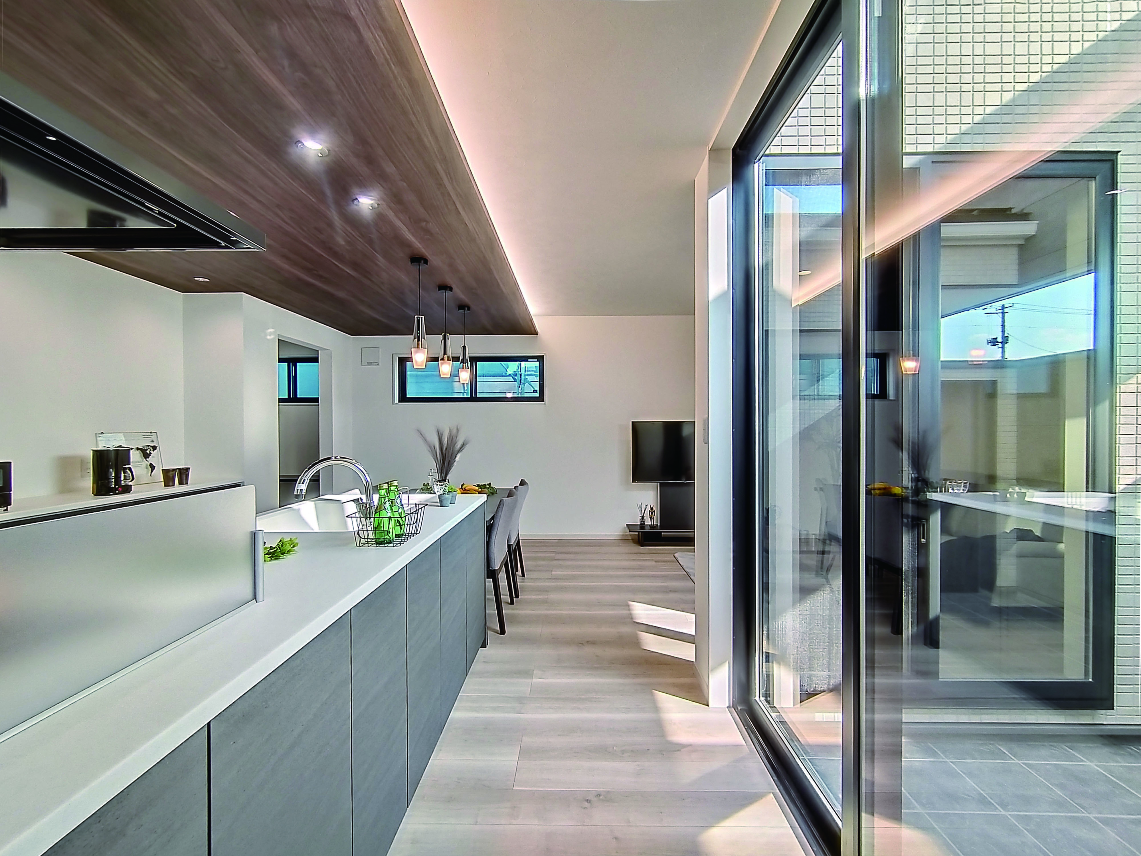 テラスとキッチンを中心に据えた回遊動線の端にある、書斎は第二のリビングとして、お子さまの勉強スペースとしても使える万能空間。