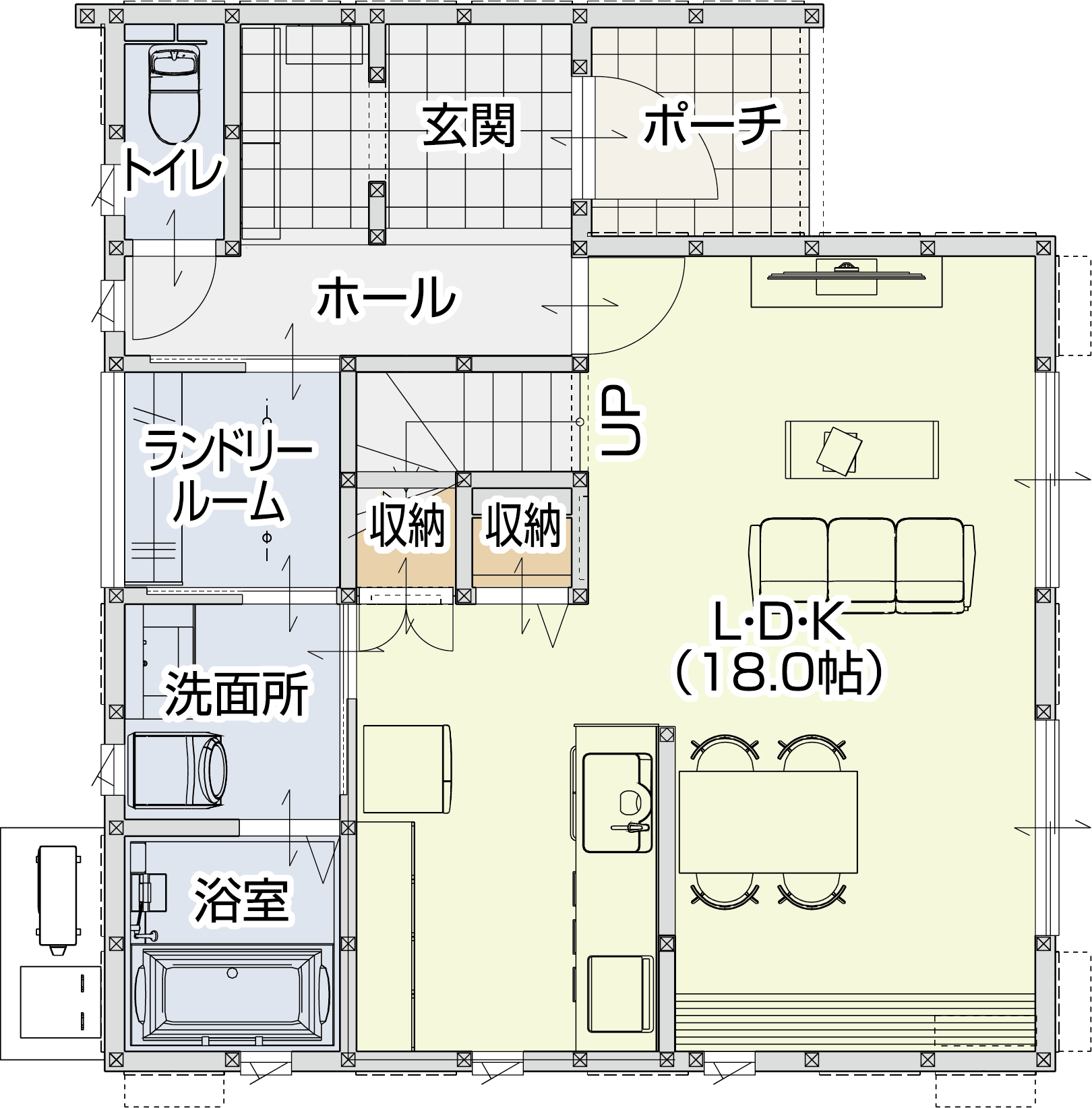 「洗う・干す・しまう」が洗面所の一箇所で完結する家事1/2動線は、忙しい共働き世代の味方です。