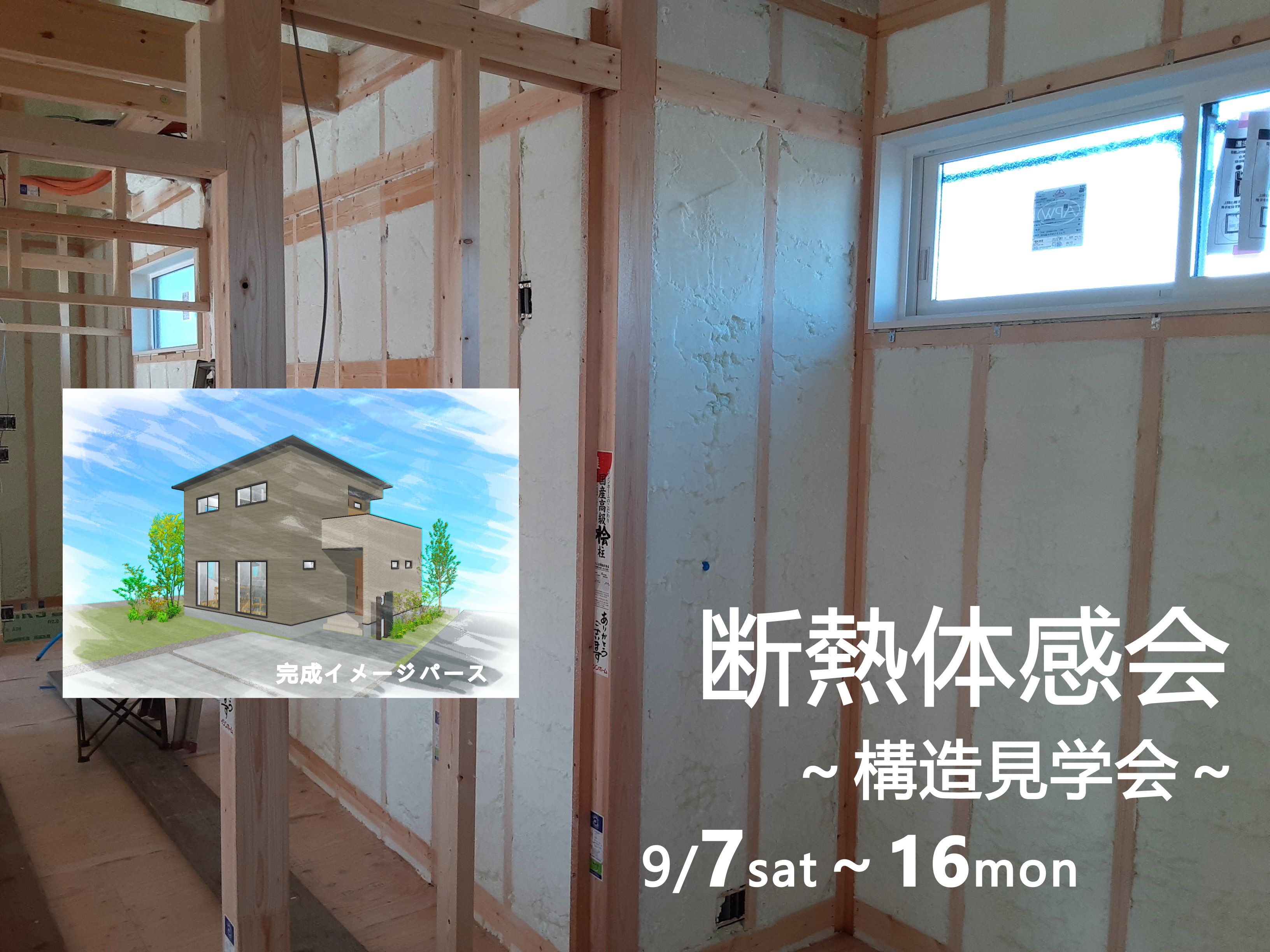 建設中のモデルハウスにて「断熱体感会(構造見学会)」を開催します。