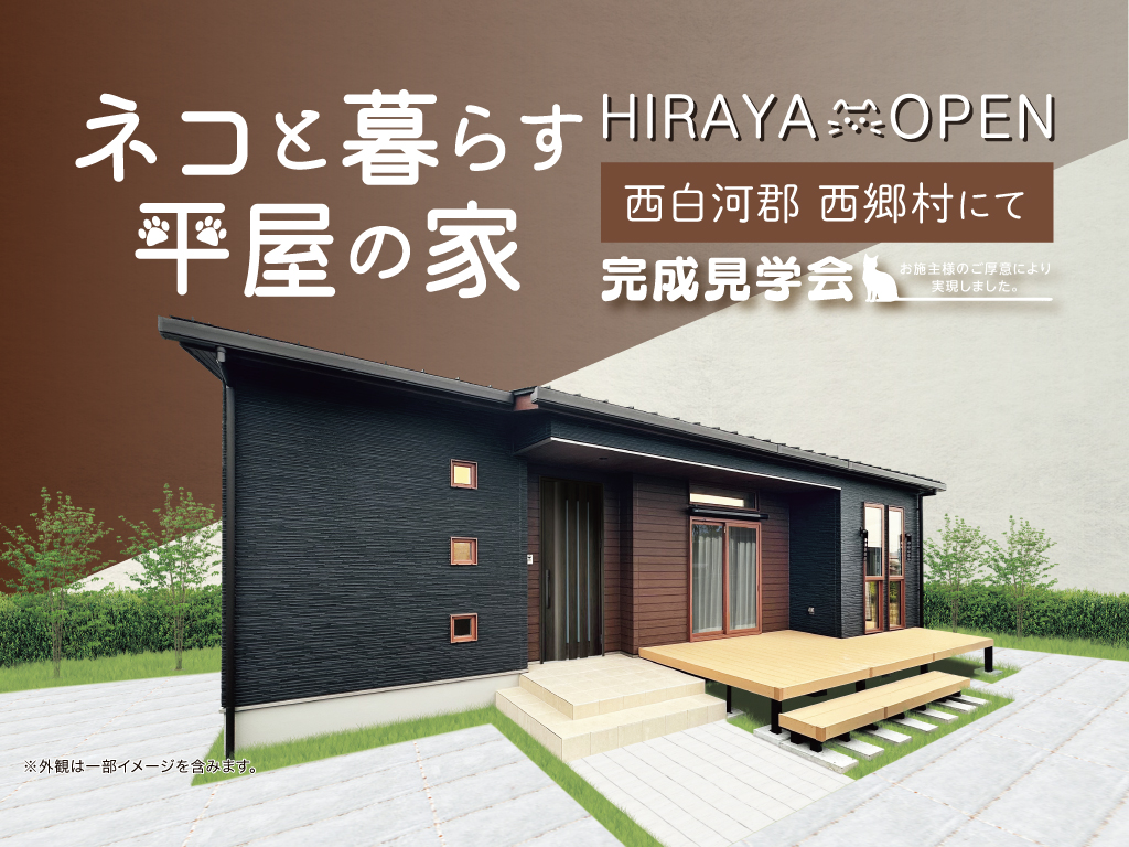 西白河郡 西郷村 9/14・15・16・21・22・23 ネコと暮らす平屋の家 完成見学会