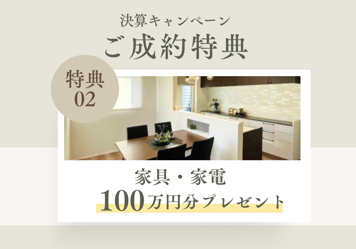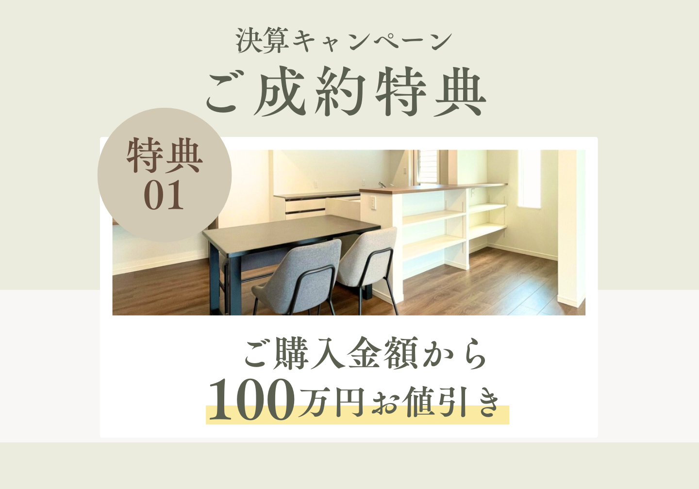 特典① 期間中のご成約でご購入金額から100万円お値引き!