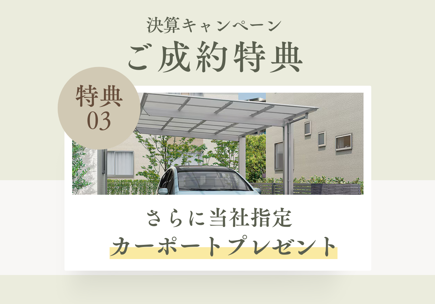 特典③ さらに当社指定カーポートもプレゼント!