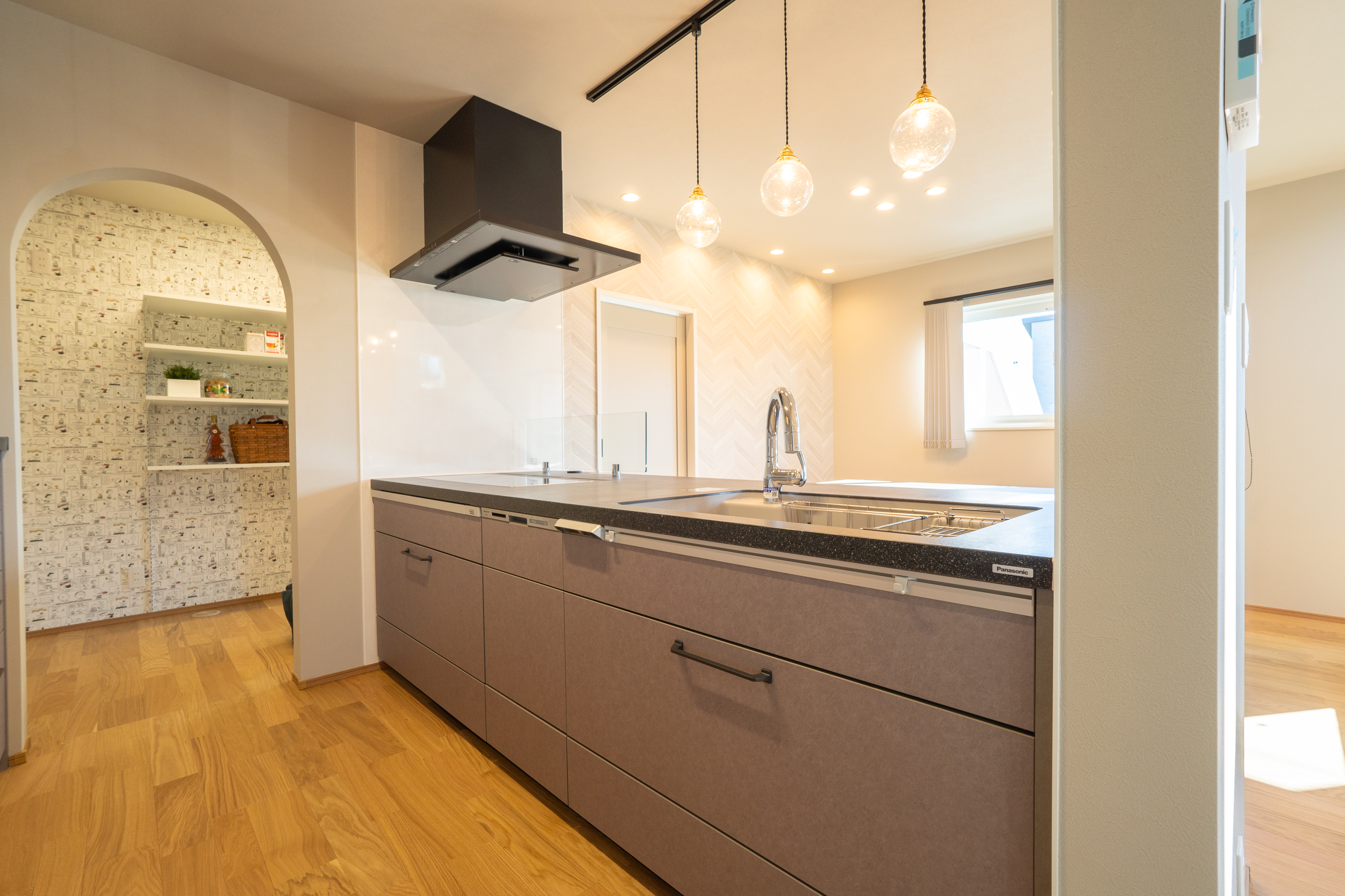 さらに、階段やパントリーの入口にはかわいいアーチの垂れ壁を採用し、デザイン性にもこだわっています。見学会では、このような細部までこだわった家の魅力を実際に体感できる絶好の機会です。