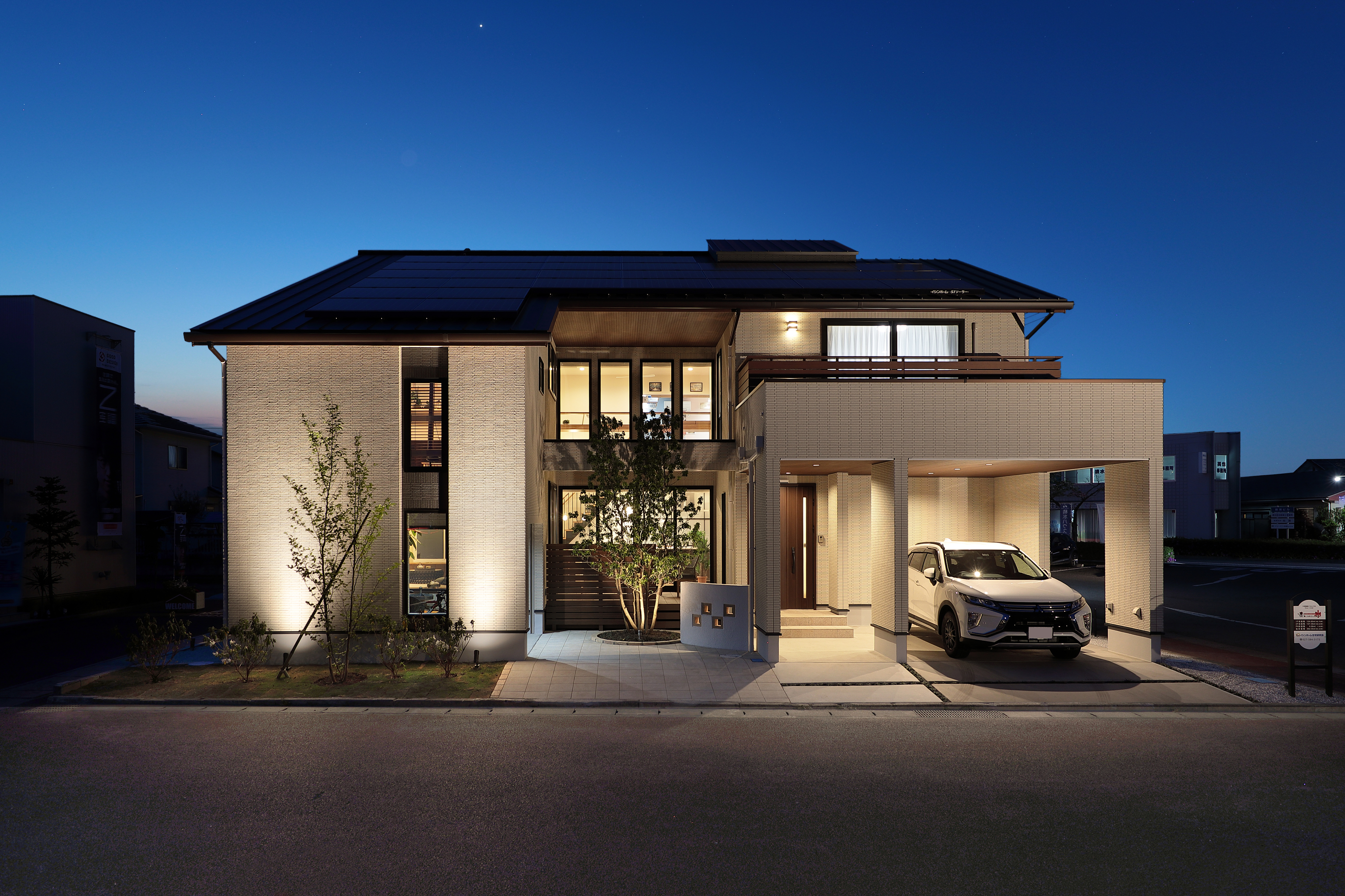 暮れる時間帯から、モデルハウスに設置されたライトアップで、美しい光景をお楽しみいただけます。