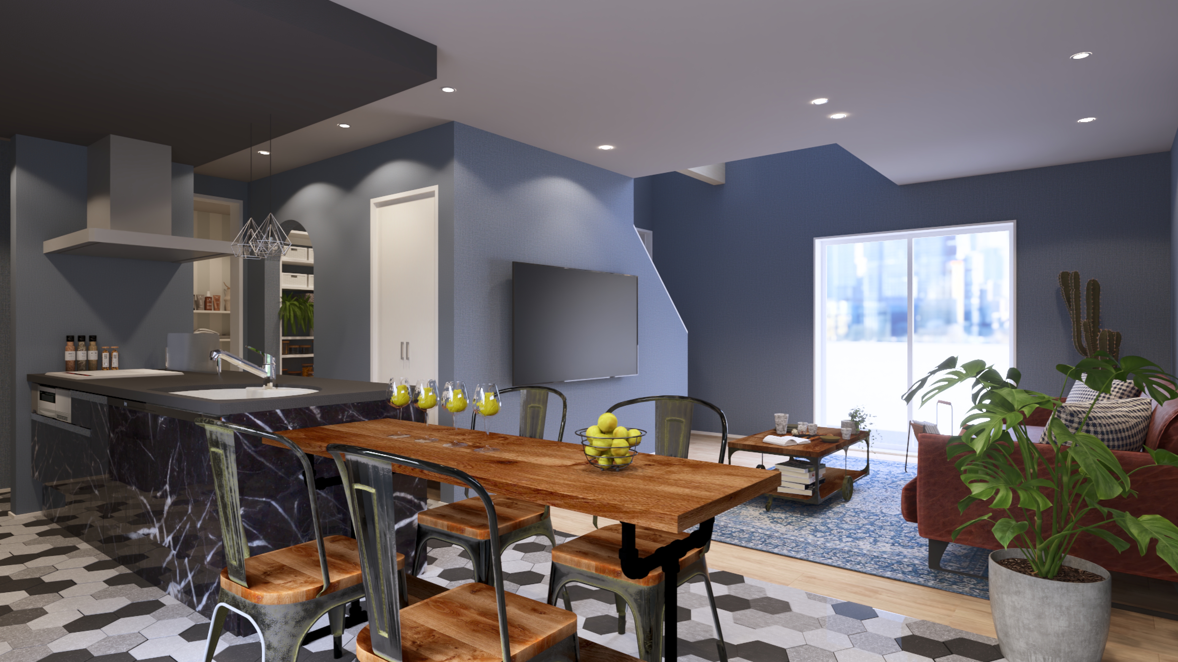 タイル床がおしゃれなダイニングキッチン