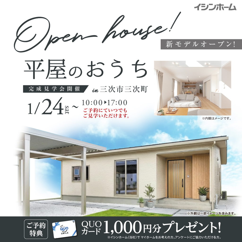 三次市下川立町《川地ヒルズ分譲地内》2/15・16 完成見学会