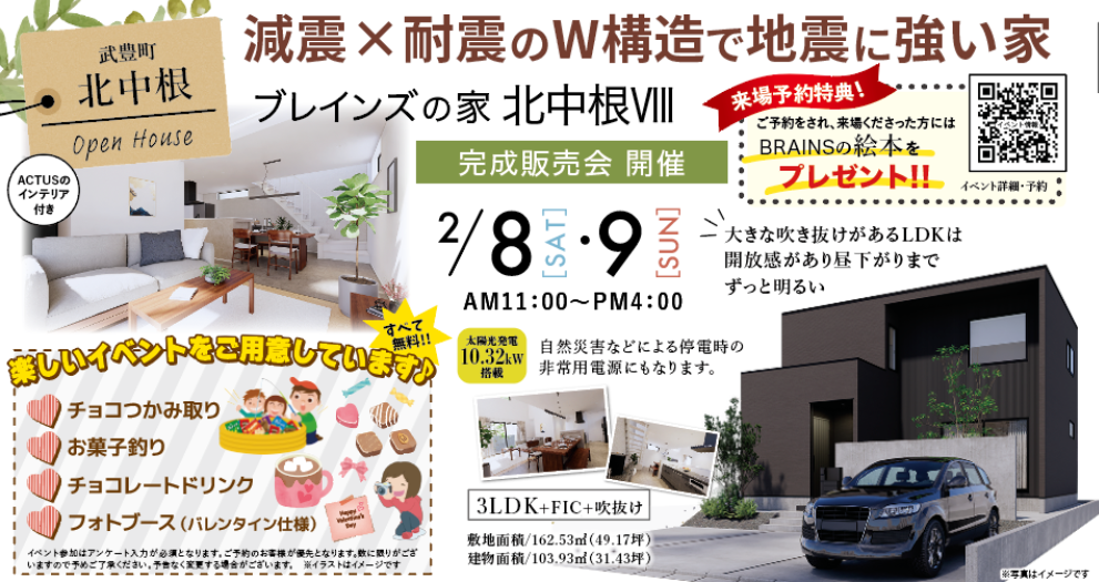 【ブレインズの家北中根Ⅷ完成イベント開催!】2/8・2/9