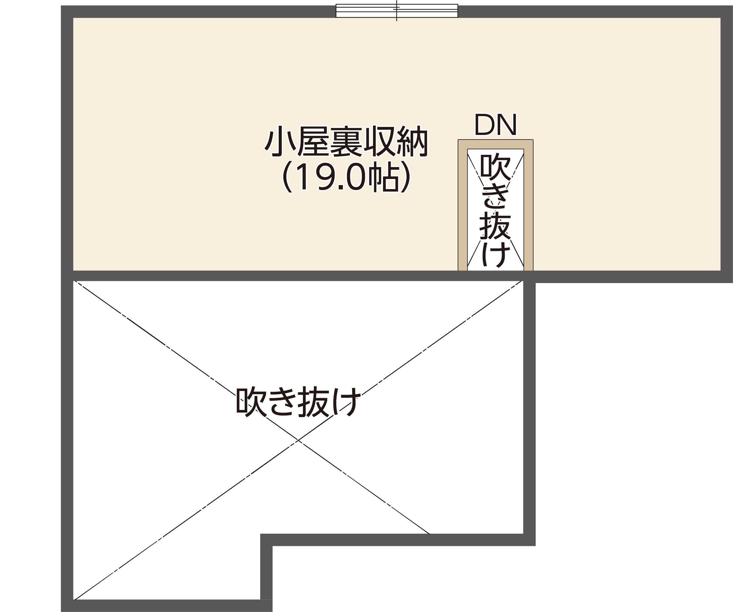 LDKから階段を上った先にあるのは小屋裏収納スペース。