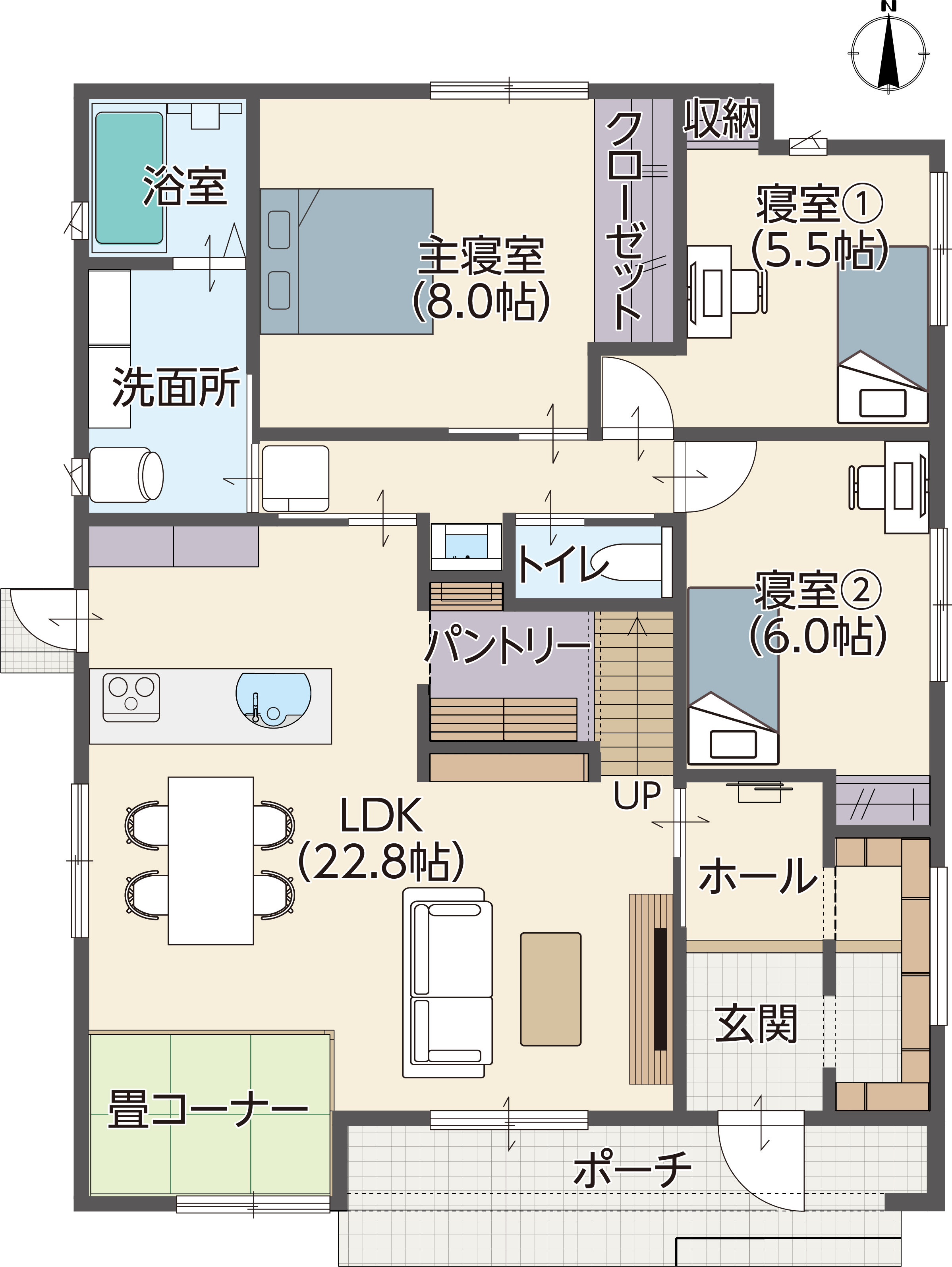 1段上がった畳コーナーは、家族がホッとできる癒しの場🍵