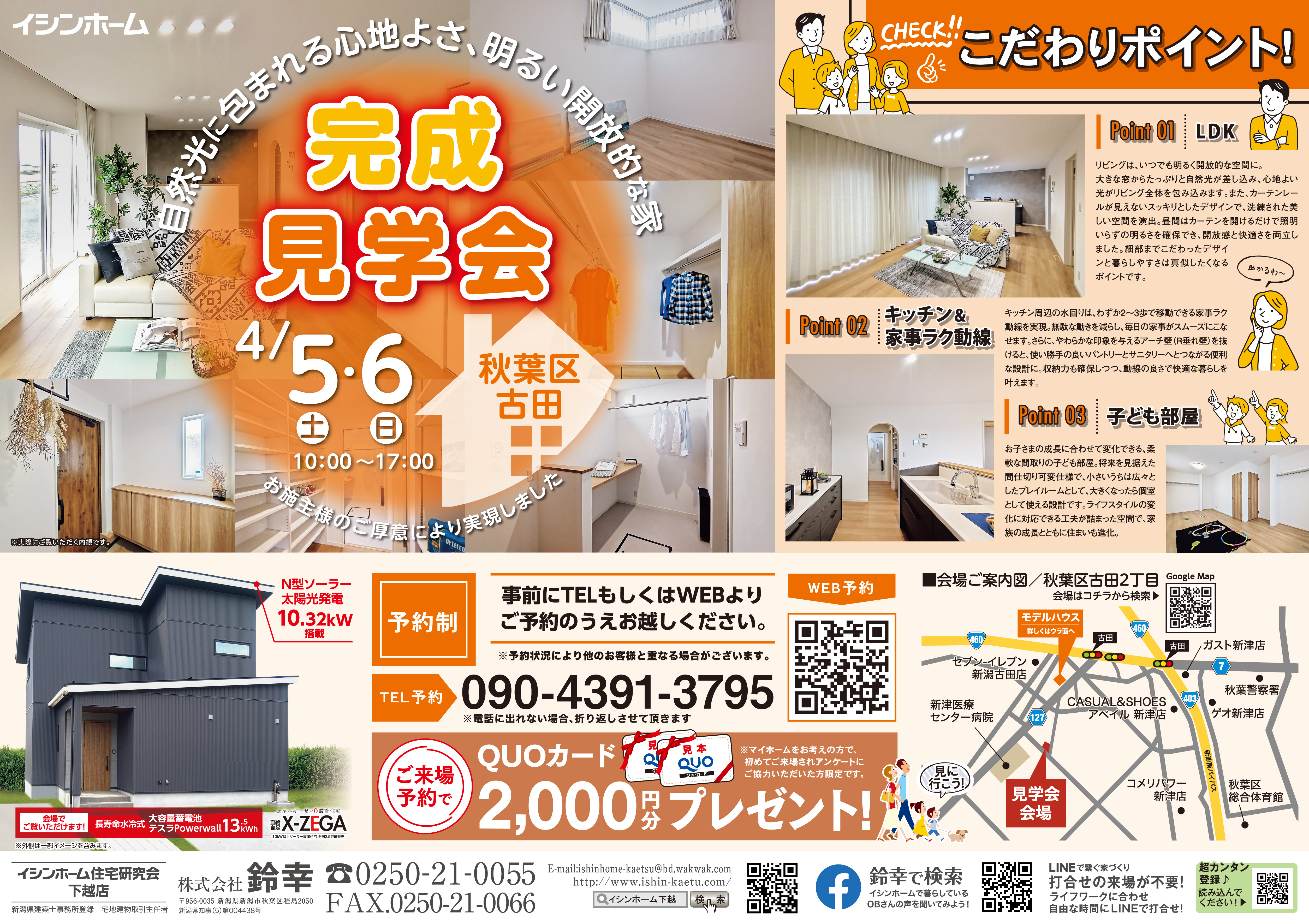 4/5(土)・6(日)新潟市秋葉区古田にて 実例完成見学会🏠✨