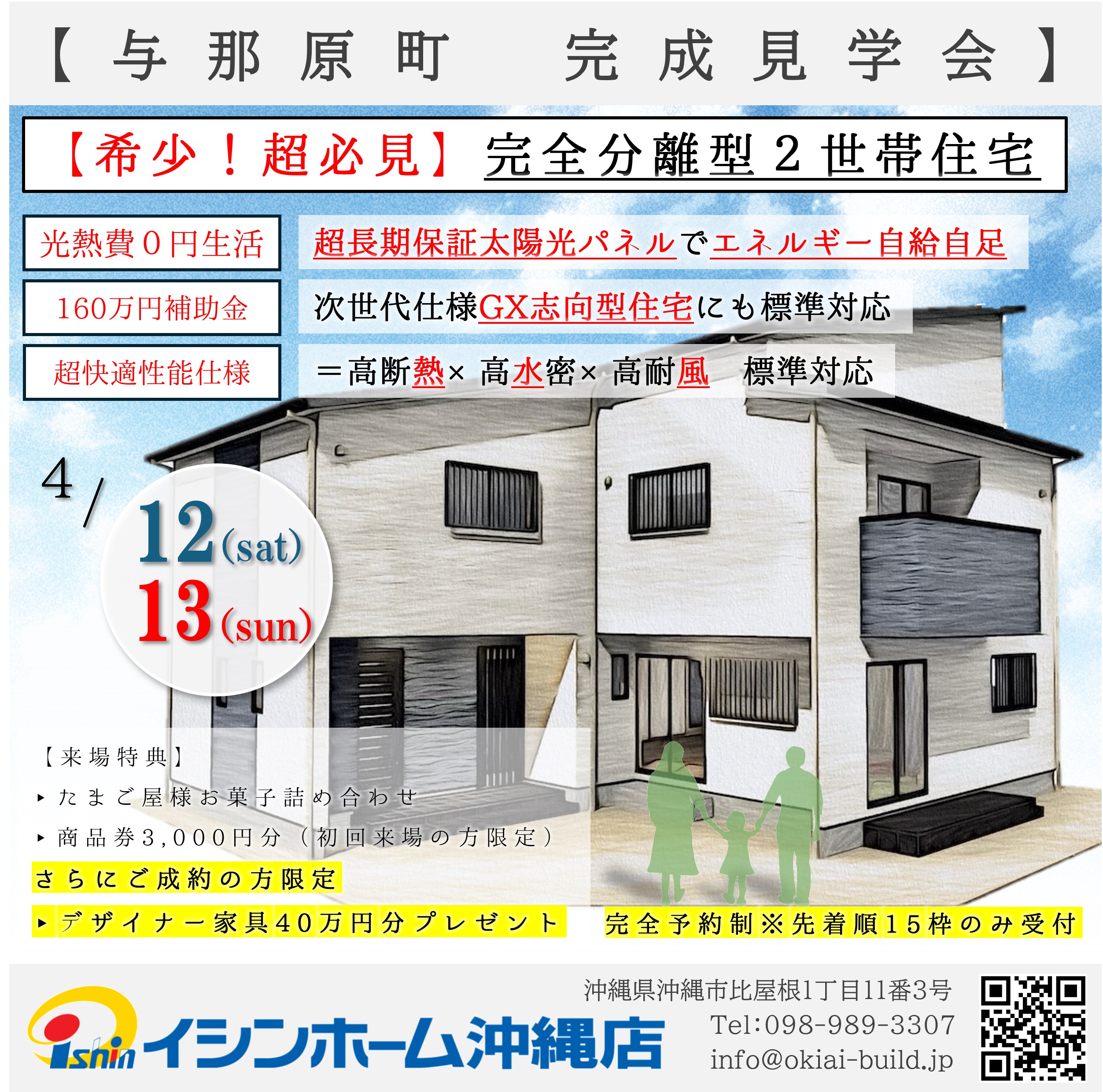 与那原町で完成見学会を[4/12(土)・4/13(日)]の2日間で開催します。