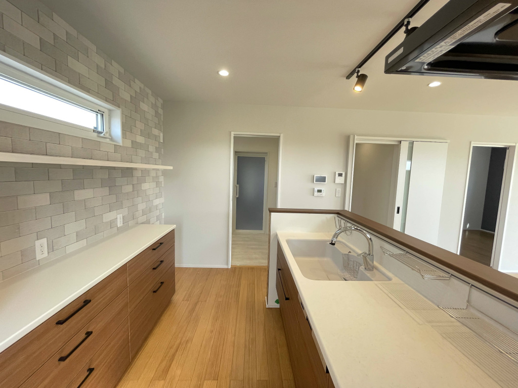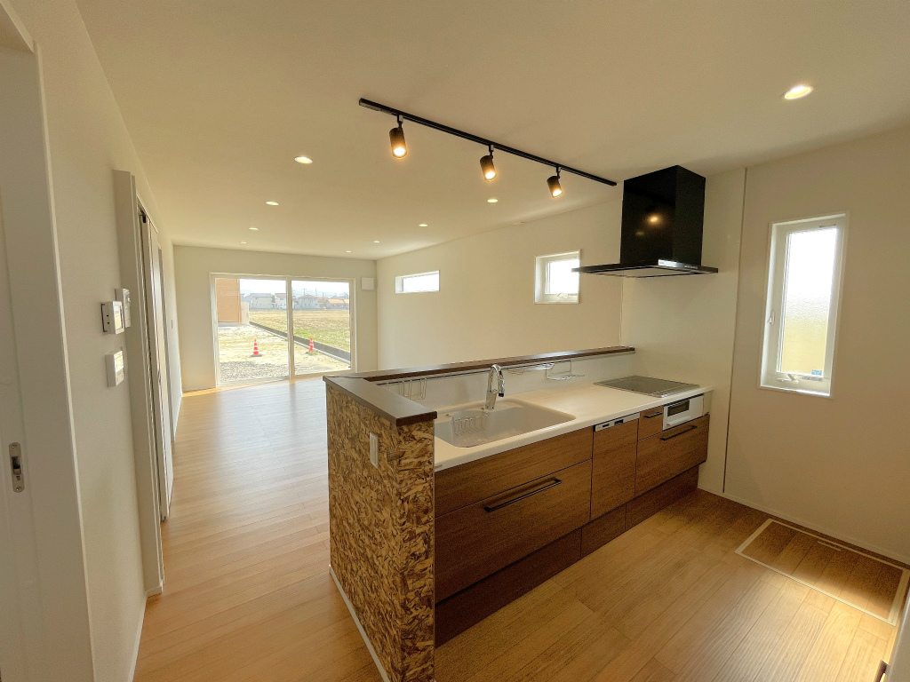 キッチンは家事ラク動線にこだわり、料理をしながらリビング全体を見渡せる安心設計。