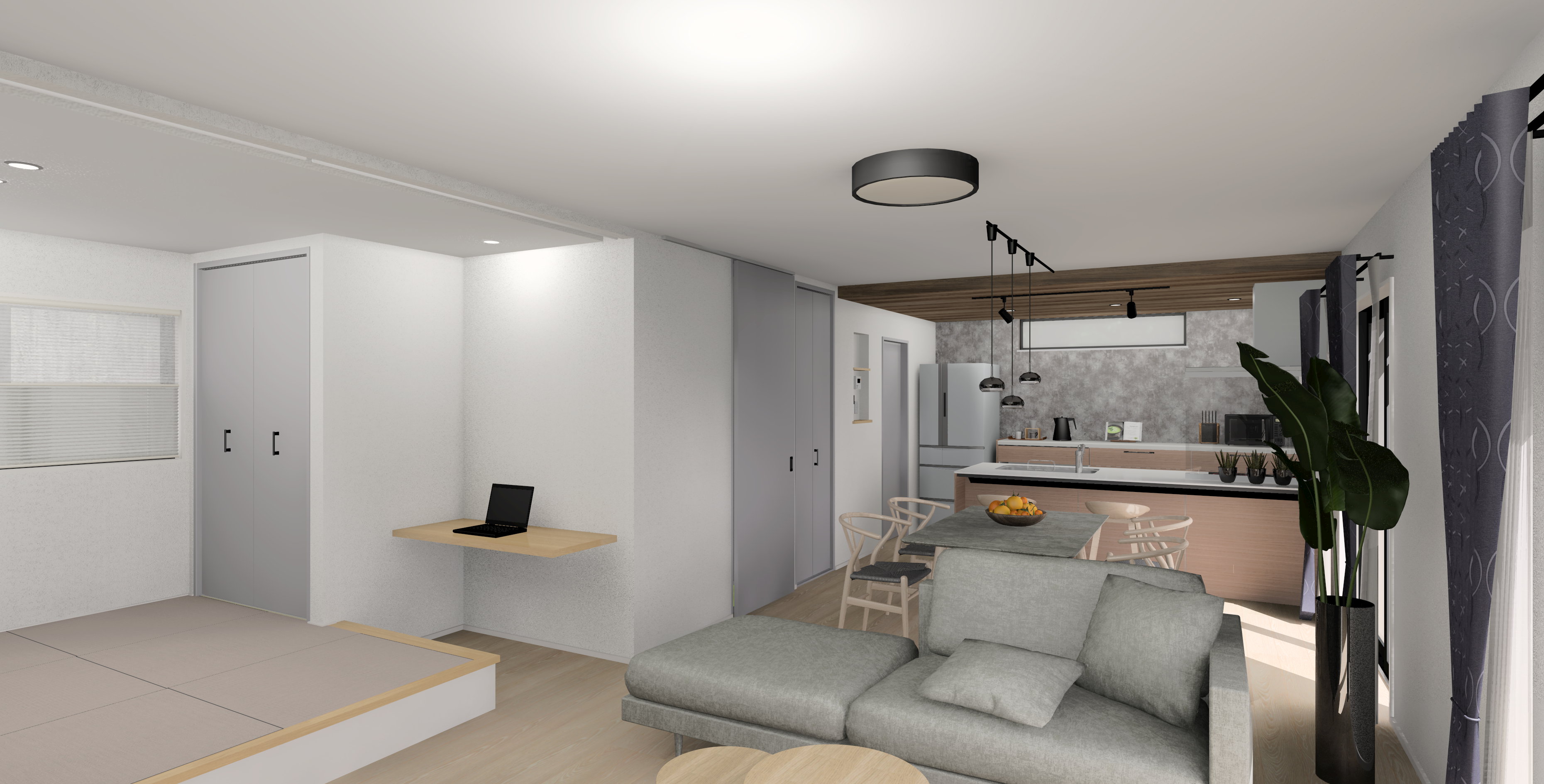 外観・内観ともにグレー・木目ですっきりとした印象を与えます。