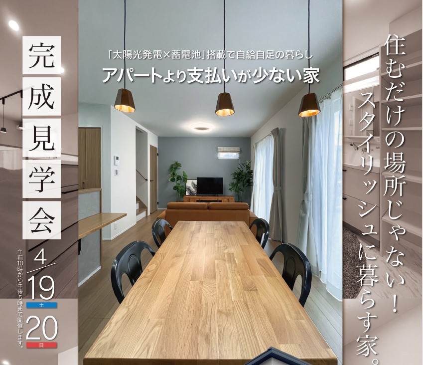 【モデルハウス 完成見学会 4/19,20(土日)開催 ~アパート代より支払いが少ない家モデル~】